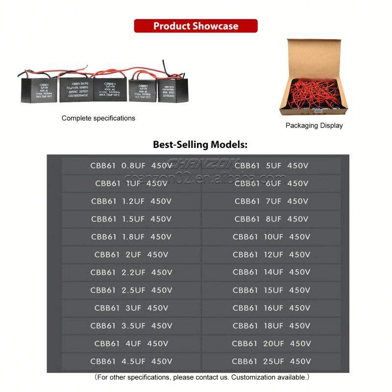 พัดลม CBB61ตัวเก็บประจุสำหรับสตาร์ท1.2 1.5 1.8 2 2.2 2.5 3 3.5 4 5 6 7 10 12 15 UF 450V 450V 500V