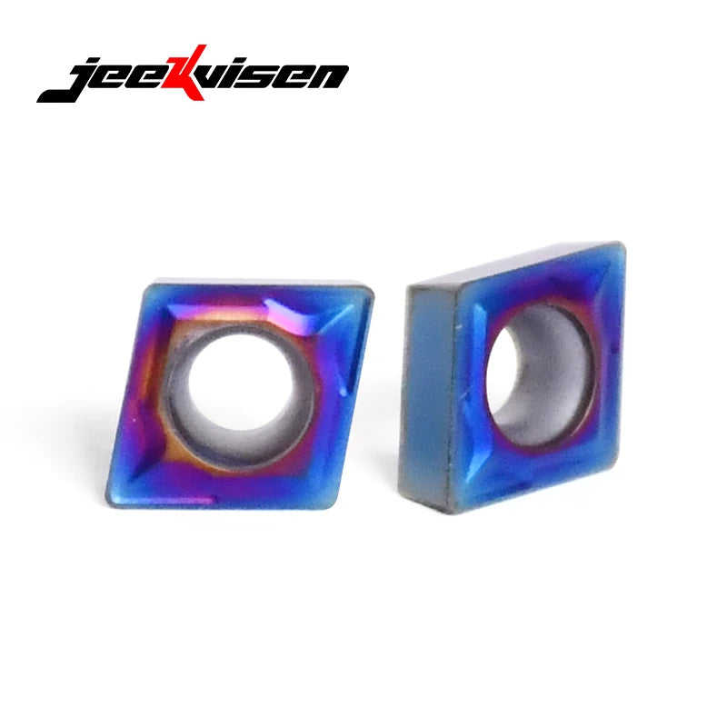ใบมีดกลึงเหลี่ยมเคลือบสีน้ำเงิน CCMT060208 ยี่ห้อ Jeekvisen สำหรับงานกลึงโลหะผสมแข็ง น้ำหนัก 100 กรัม เหมาะสำหรับงานไม้