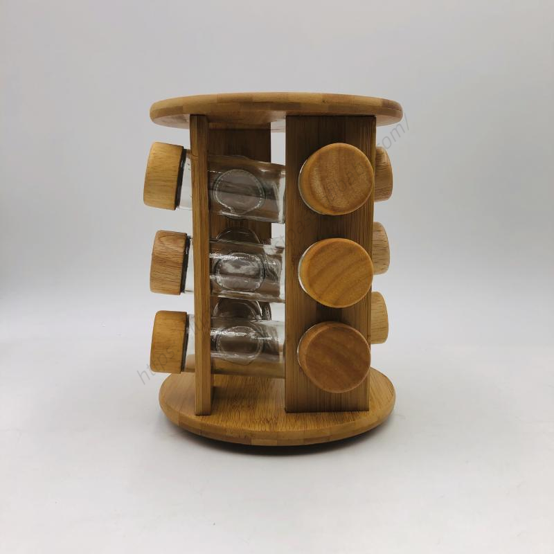 ชั้นวางเครื่องปรุงแบบหมุน 3 ชั้น รุ่น CL019 พร้อมฝาไม้ สำหรับขวดเครื่องเทศ ใช้ในครัวและร้านอาหาร ขายส่ง