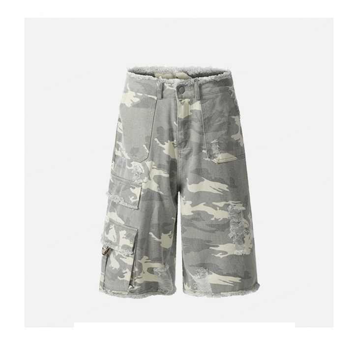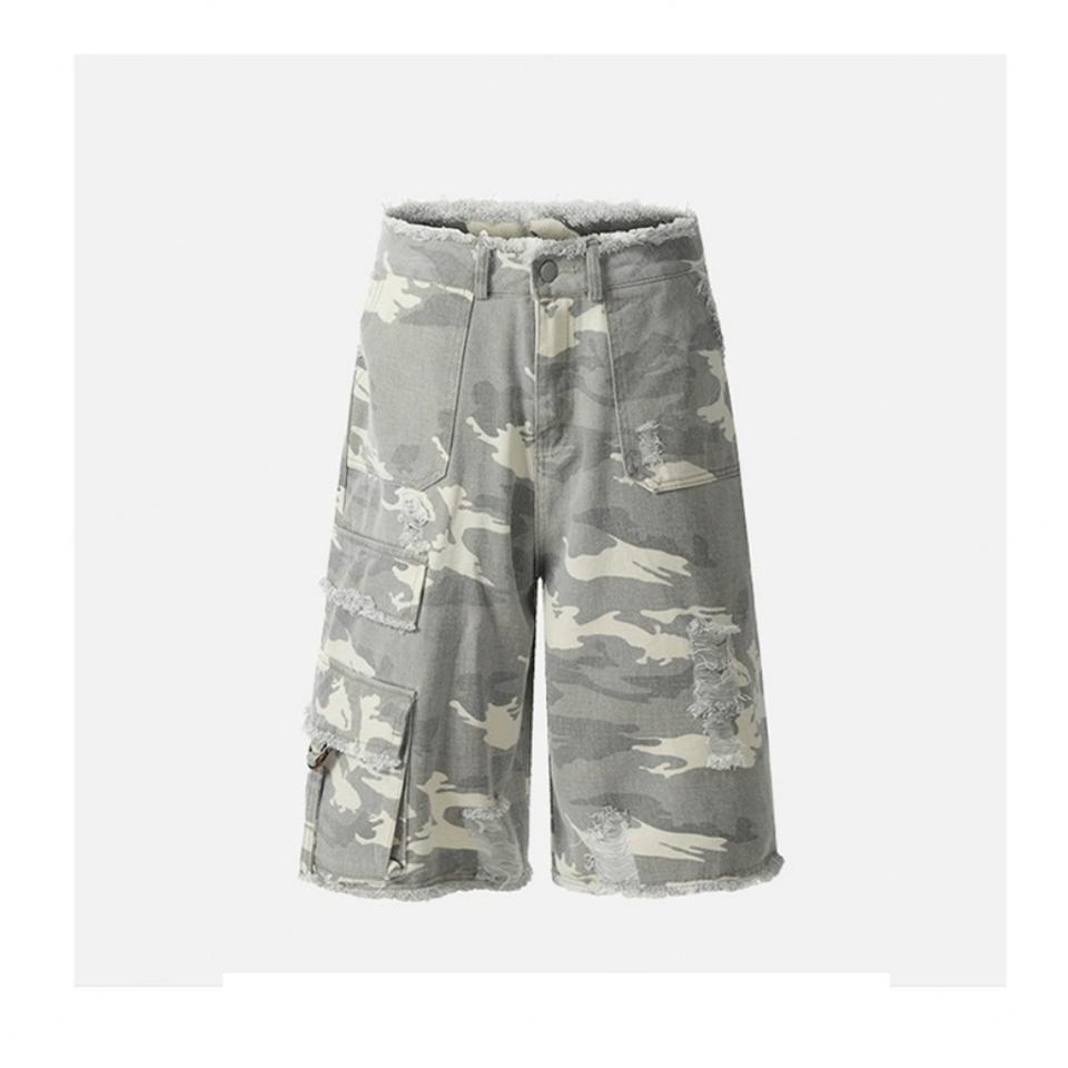 กางเกงขาสั้นคาร์โก้ลายพรางขายส่ง ผ้าฝ้ายสั่งทำทรงตรง สไตล์ลำลอง กางเกงขาสั้นขาดๆ กางเกงเบอร์มิวดา กางเกงขาสั้นผู้ชาย