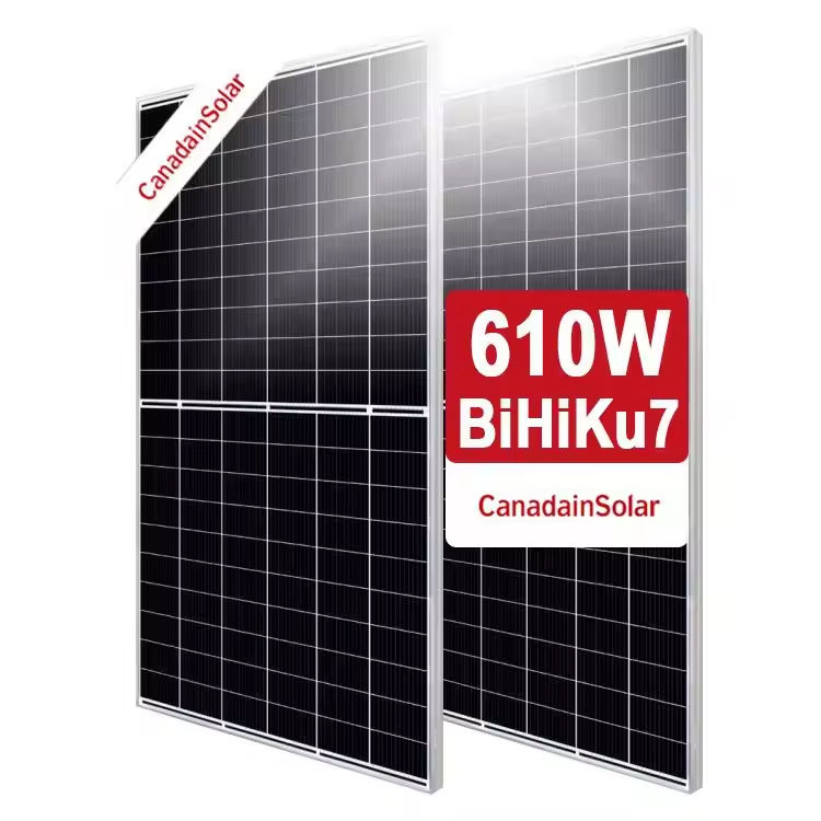 แผงโซลาร์เซลล์แคนาดาแบบขายส่ง BiHiKu7 Bifacial Mono PERC 580-610W 580W 595W 600W 605W 610W แผงโมโนคริสตัลไลน์แคนาดา
