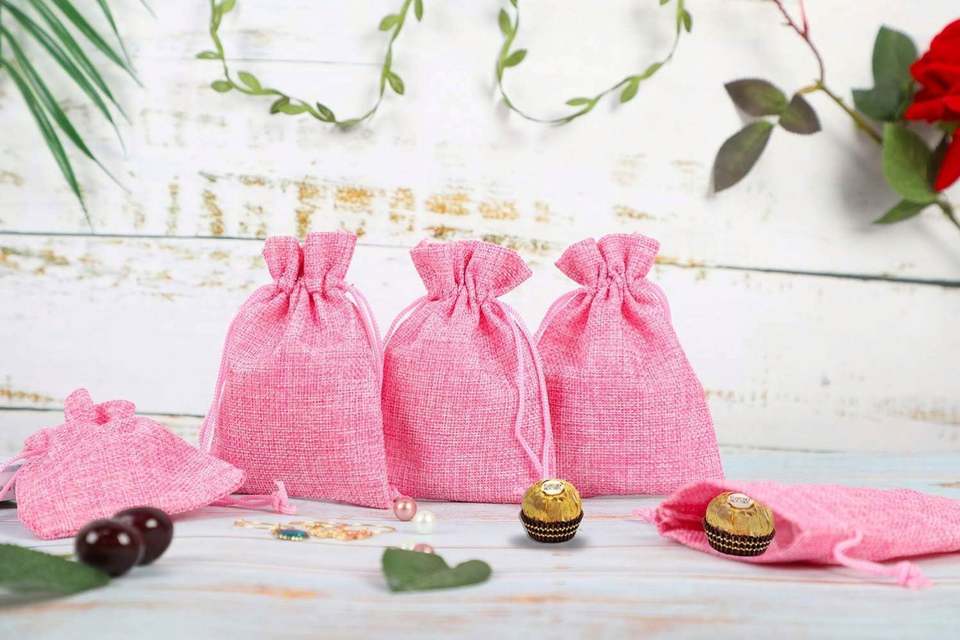 ถุงผ้าลินินสีสันสดใสขนาดเล็กแบบมีเชือกผูก ป้องกันฝุ่น สำหรับใส่เครื่องประดับ ของขวัญ งานแต่งงาน ขายส่งขนม เครื่องเทศ ของชำร่วย