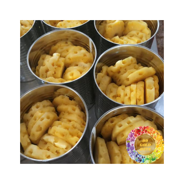 แหวนสับปะรดบรรจุกระป๋องสีเหลืองหวานฉ่ำไม่มีสารปรุงแต่งที่สมบูรณ์แบบสำหรับซูเปอร์มาร์เก็ต