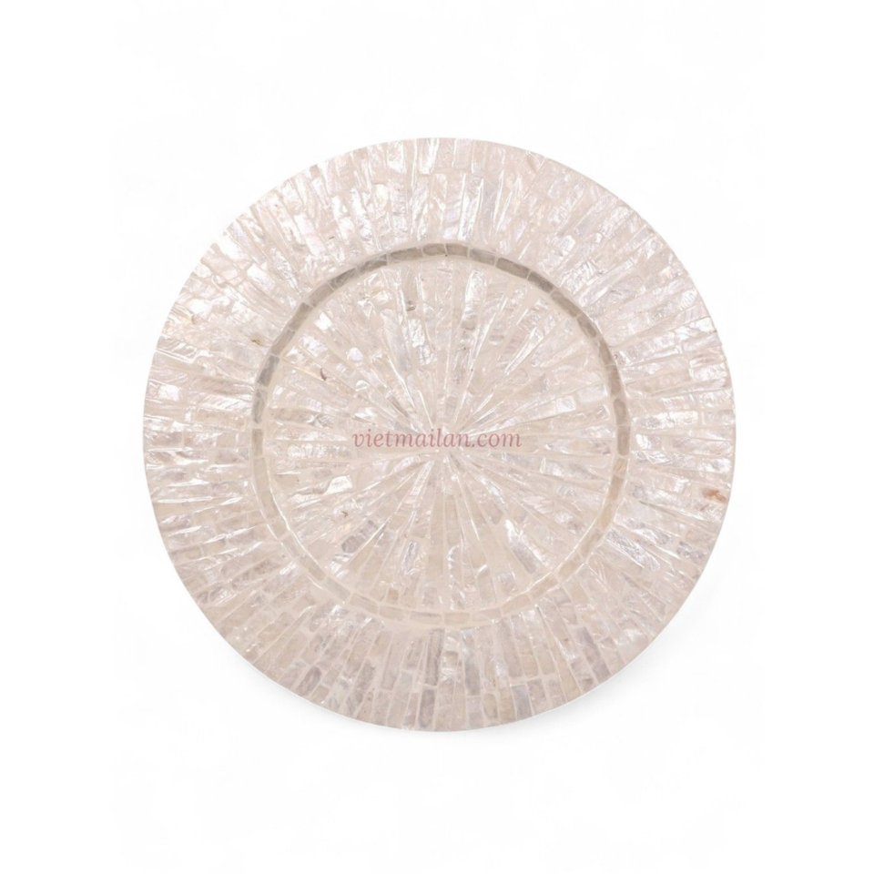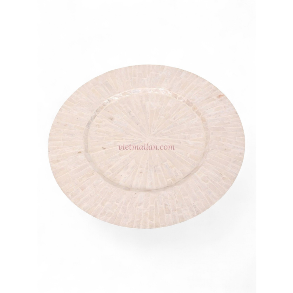จานรองอาหารเปลือกหอยกาบหอยกาบสั้นแบบขายส่ง ผิวมุก ผลิตในเวียดนาม แกนไม้ไผ่ สำหรับตกแต่งโต๊ะอาหารสุดหรู