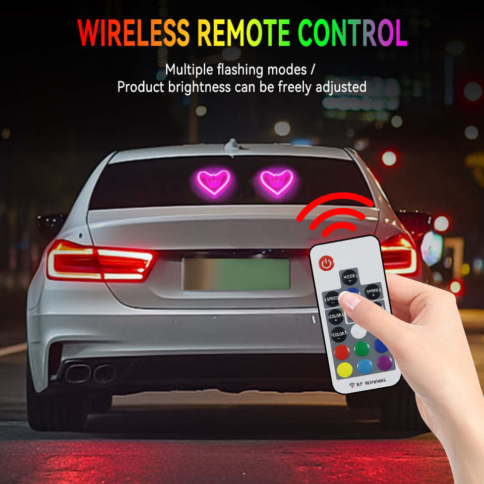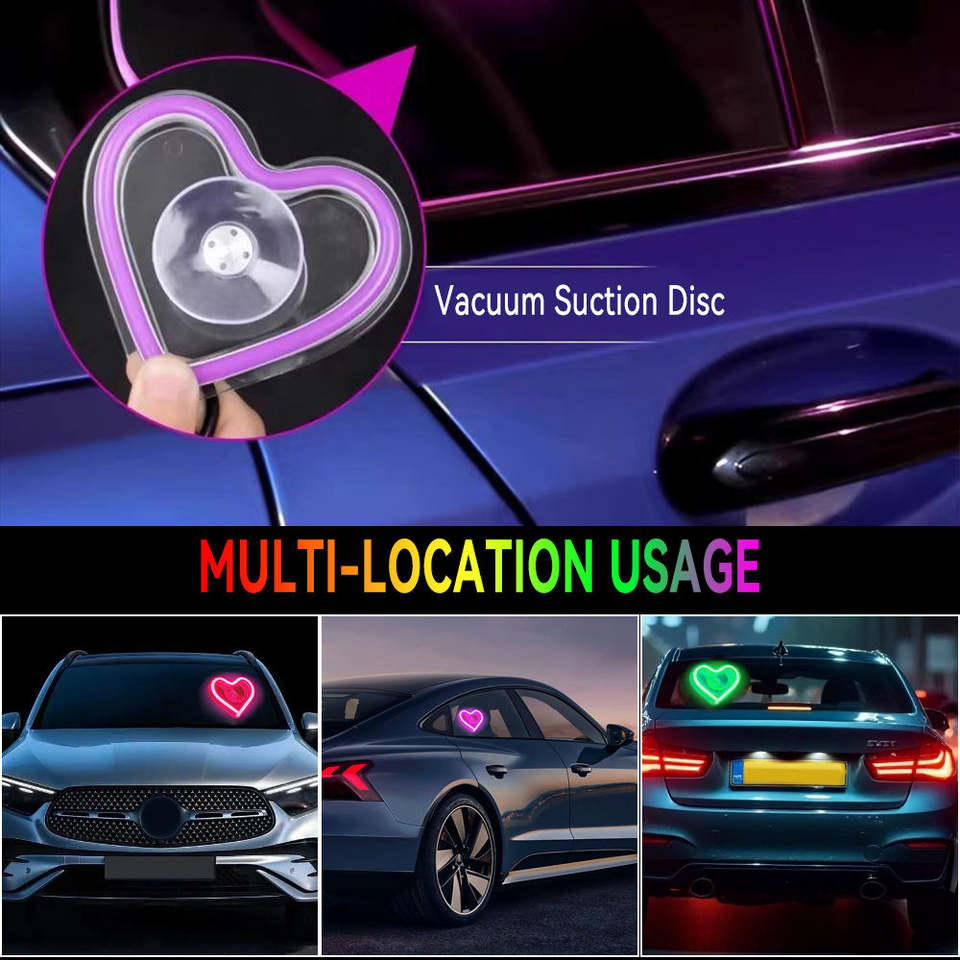 ไฟตกแต่งรถยนต์รูปหัวใจ 8 สี ไฟนีออน LED แบบเส้น ไฟกระพริบ ใช้แบตเตอรี่ พร้อมรีโมทคอนโทรล 12V 10W ขายส่ง