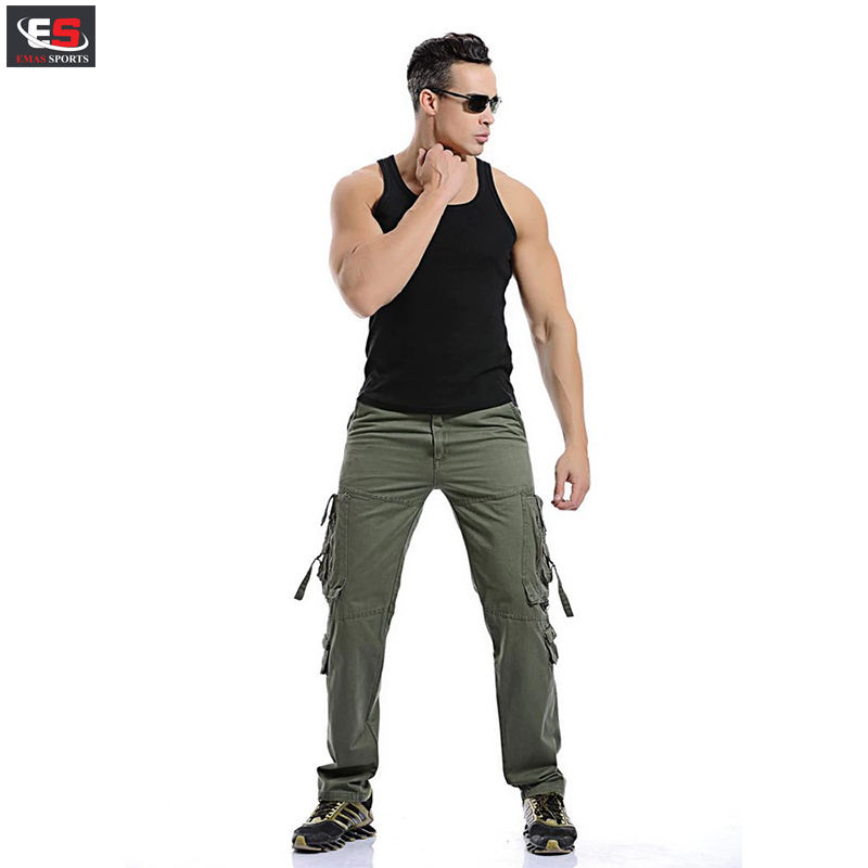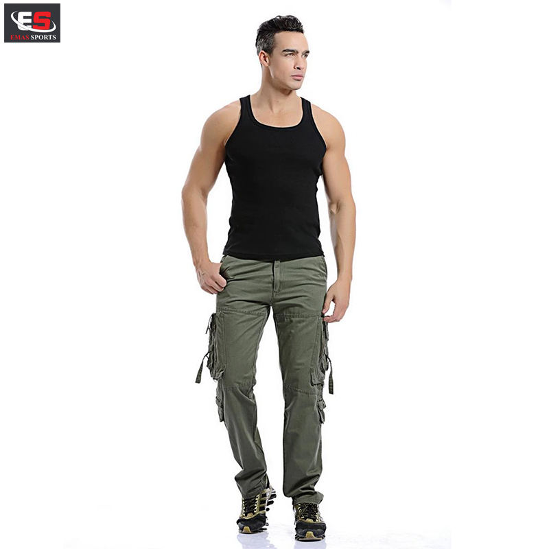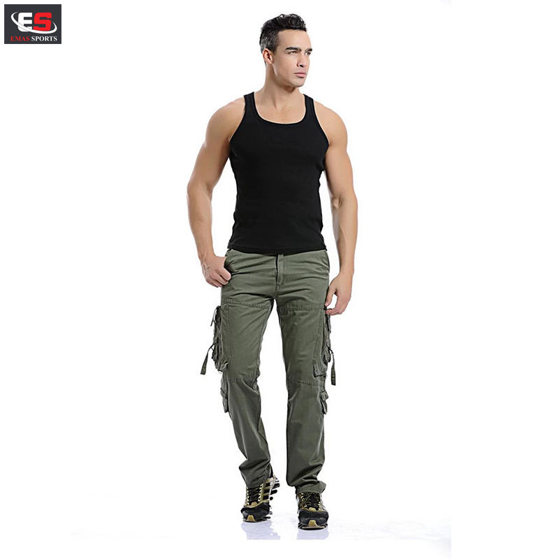 กางเกงคาร์โก้ของผู้ชาย,กางเกงผ้าคอตตอนทรงหลวมผ้าคอตตอนมีหลายกระเป๋า
