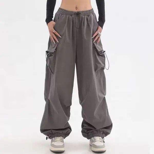 กางเกงคาร์โก้เอวสูงเอวยางยืดทรงหลวมสไตล์วินเทจลาย2023ฤดูร้อน