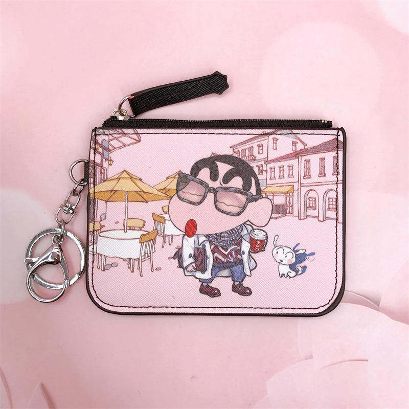 กระเป๋าสตางค์หนัง PU ลายการ์ตูนอนิเมะชินจังน่ารักสำหรับเด็ก คุณภาพสูง พกพาสะดวก ใส่เหรียญ บัตรประชาชน กุญแจ