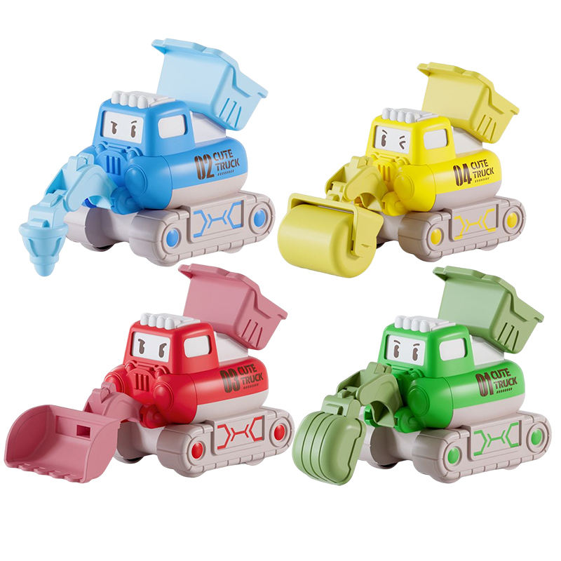 ชุดของเล่นรถก่อสร้างการ์ตูนขายส่ง กดแล้ววิ่ง รถของเล่นวิศวกรรมสำหรับเด็กเล็ก