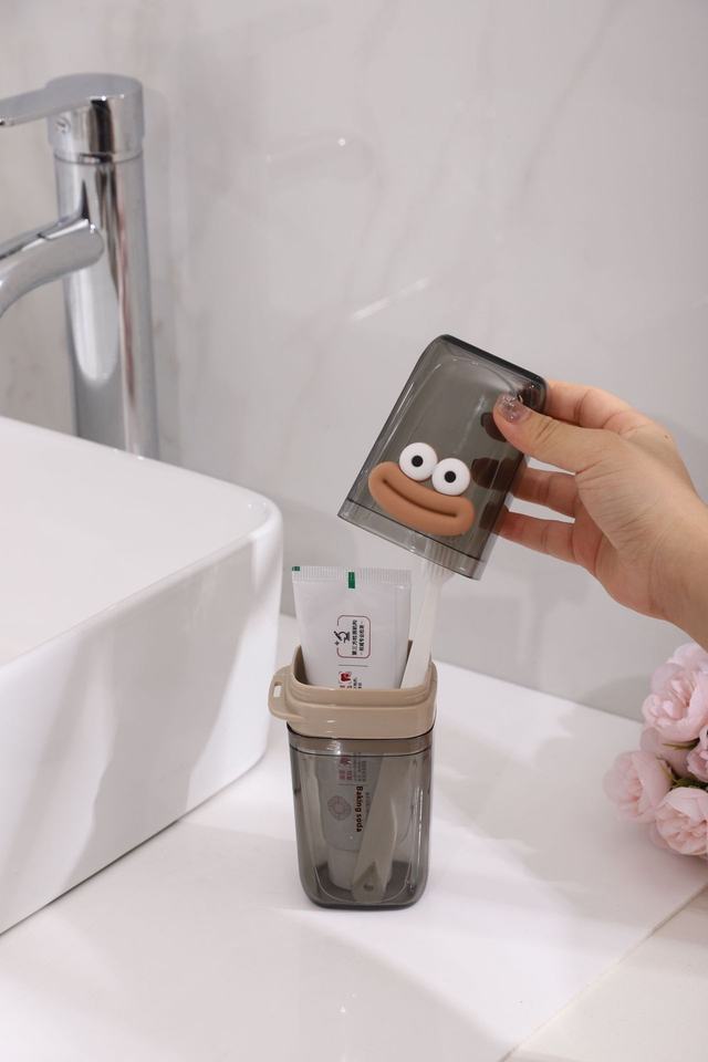 แก้วน้ำยาบ้วนปากพลาสติกแบบพกพา ลายการ์ตูนน่ารัก พร้อมกล่องใส่สบู่และที่วางแปรงสีฟันแบบมีที่ระบายน้ำ สำหรับขายส่ง