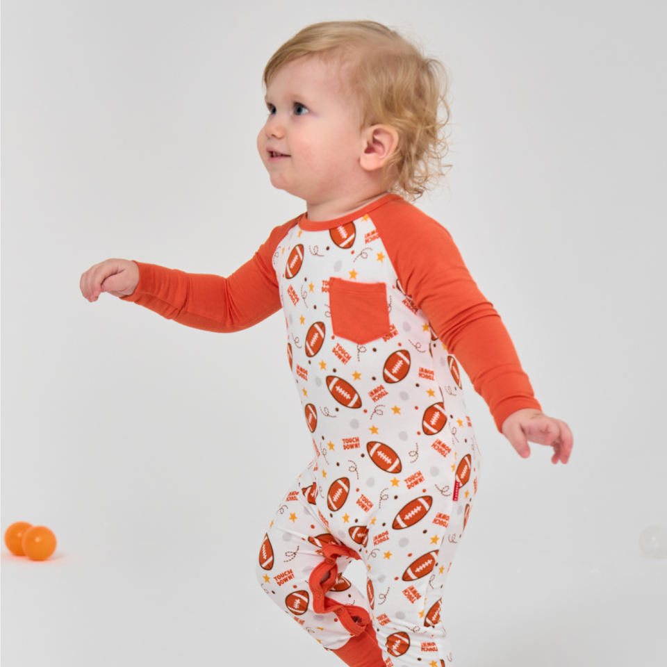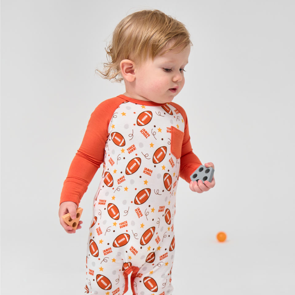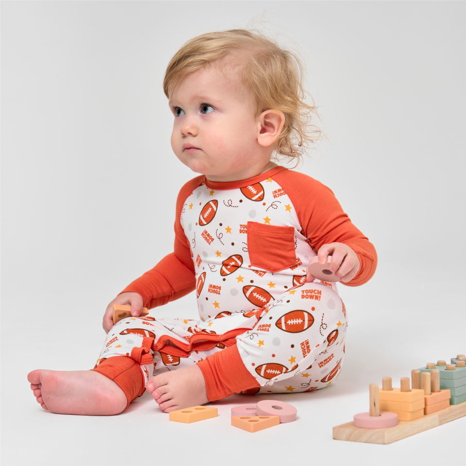ชุดรอมเปอร์เด็กทารกผ้าฝ้ายออร์แกนิคลายการ์ตูนรักบี้ แขนยาว ดีไซน์ไม้ไผ่ ชุดจั๊มสูทเด็ก ชุดนอนเด็กแบบมีเท้าในตัว ขายส่ง