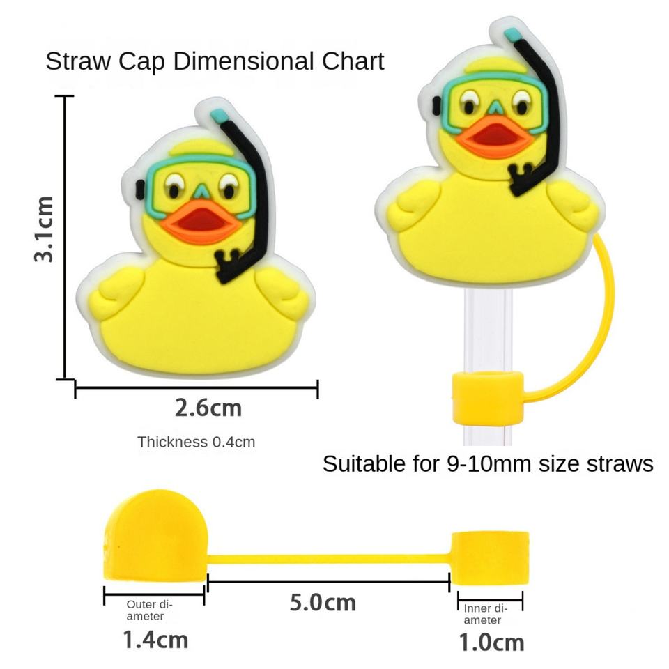 จุกปิดหลอดซิลิโคนรูปเป็ดเหลืองการ์ตูนน่ารัก ขนาด 10 มม. พร้อมจุกกันฝุ่น สำหรับหลอดดูดชาไข่มุก อุปกรณ์เสริมบาร์ มีสินค้าพร้อมส่ง