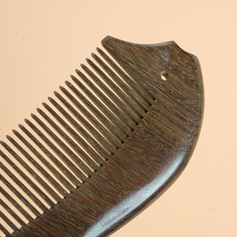 หวีไม้แกะสลักลายปลา งานฝีมือธรรมชาติ ไม้จันทน์แท้ ไม่ก่อไฟฟ้าสถิตย์ ขายส่ง