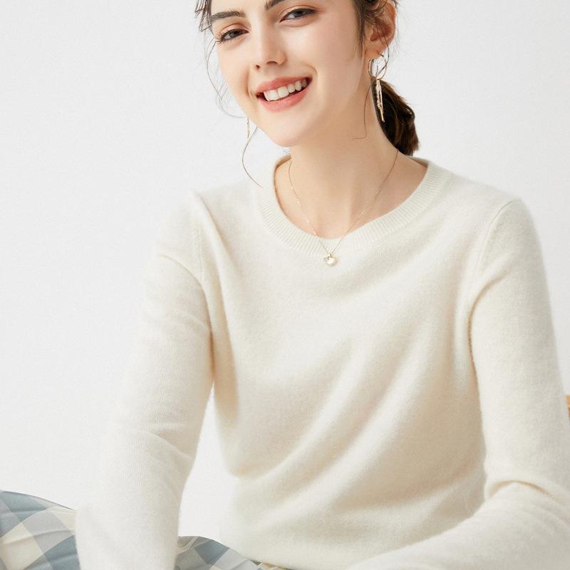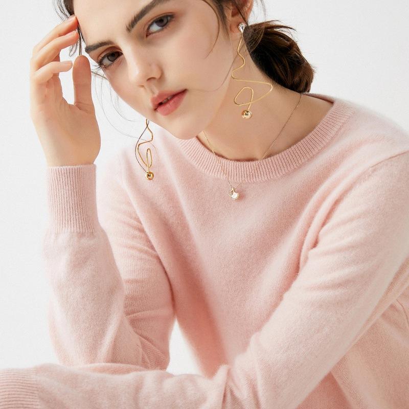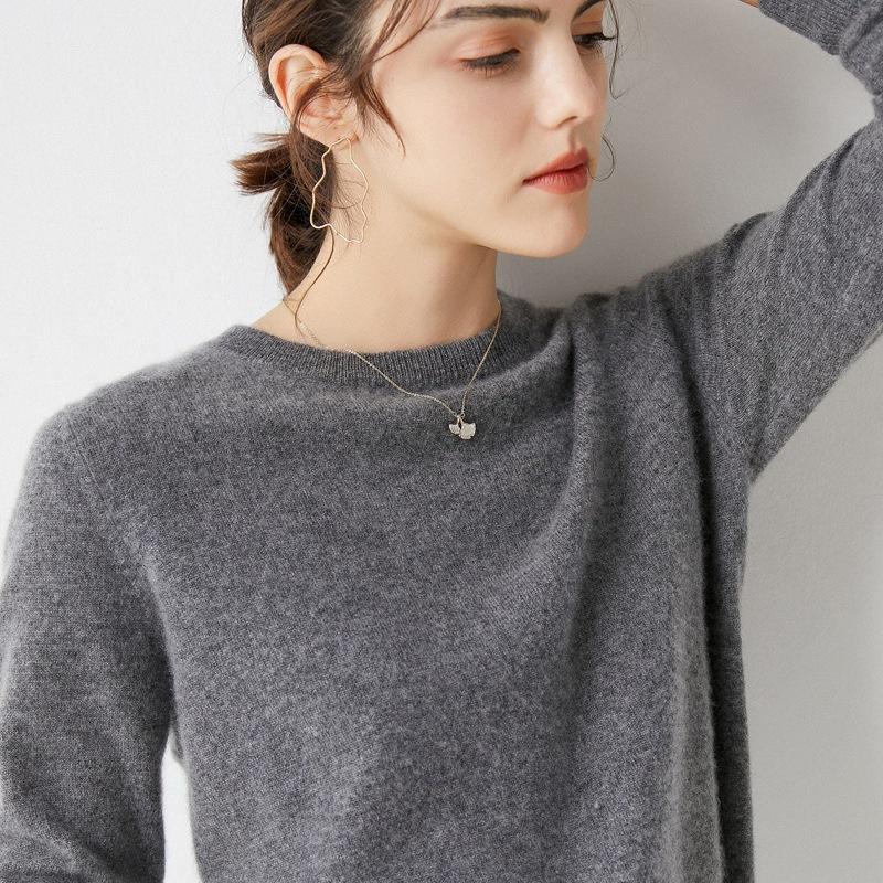 สเวตเตอร์แคชเมียร์ถักแคชเมียร์สีพื้นสไตล์ลำลอง