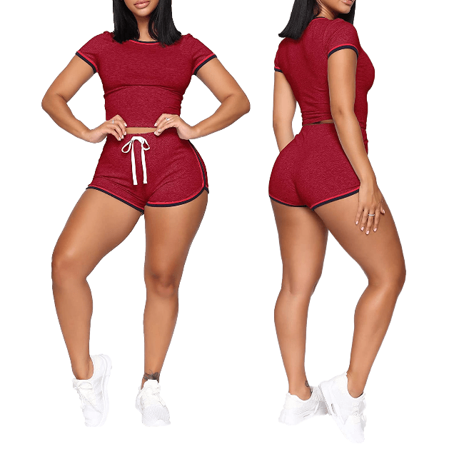 ชุดเซ็ตสองชิ้น เสื้อแฟชั่นลำลองเซ็กซี่และกางเกงขาสั้นทรงเข้ารูป แขนสั้น สำหรับผู้หญิง ขายส่ง