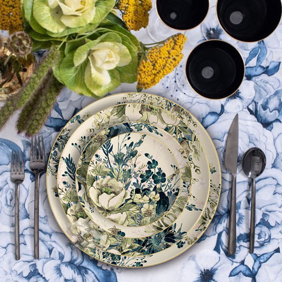 ชุดจานเซรามิกขายส่ง 4 ชิ้น ชุดจานรองสำหรับงานแต่งงาน โรงแรม และงานเลี้ยง