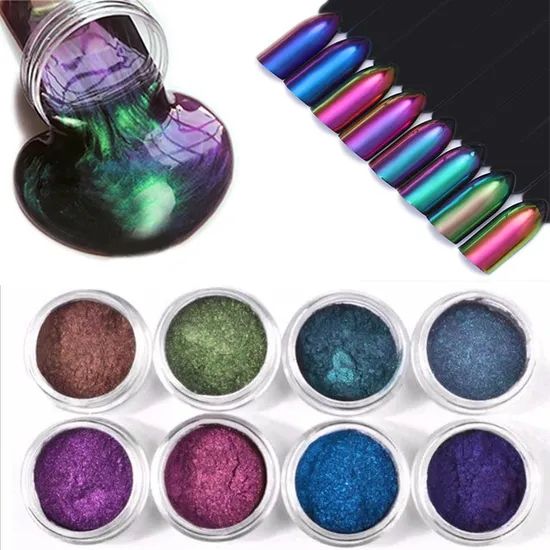 ผงสีเปลี่ยนสีแบบขายส่ง สำหรับตกแต่งเล็บ รถยนต์ อายแชโดว์