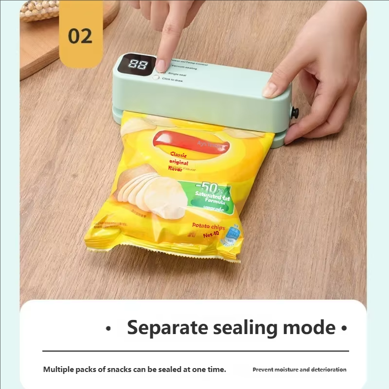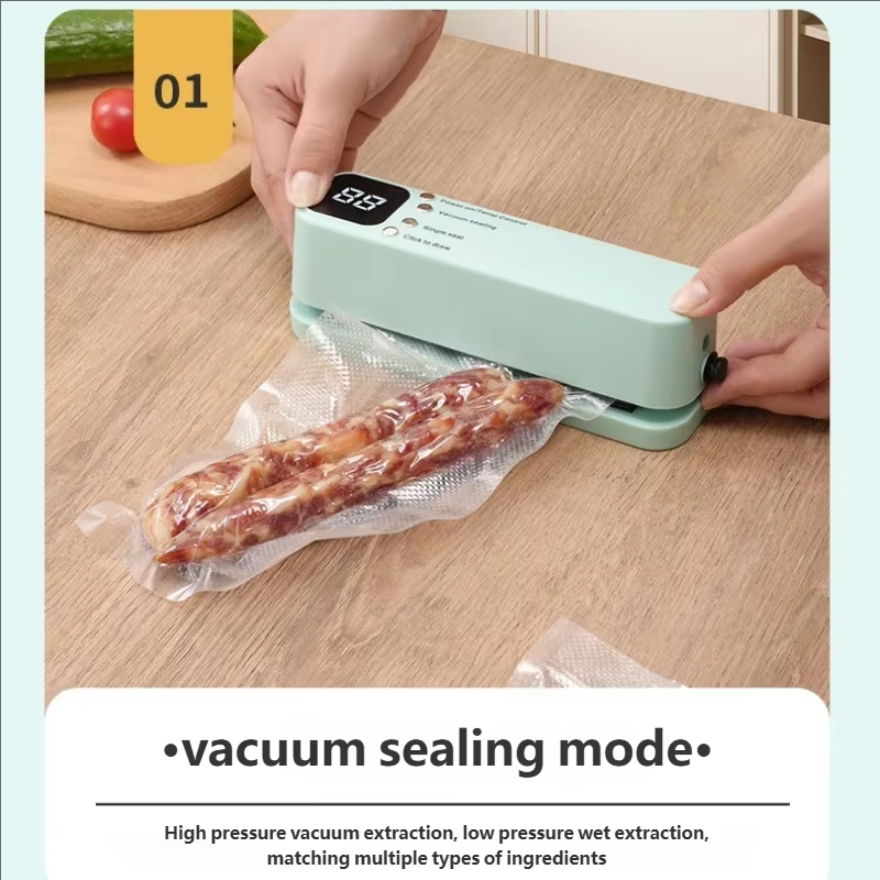 เครื่องซีลสูญญากาศไร้สายขนาดเล็กแบบอัตโนมัติเต็มรูปแบบสำหรับใช้ในครัวเรือน บรรจุภัณฑ์อาหารพลาสติกแบบพกพาขนาดเล็ก ขายส่ง