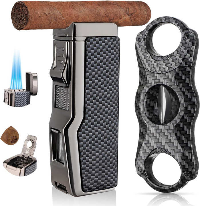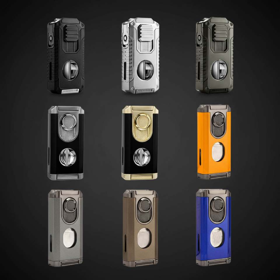 ไฟแช็คซิการ์อเนกประสงค์แบบกันลม พร้อมที่เจาะและตัด ราคาส่งถูก รับทำโลโก้ตามสั่ง ไฟสีฟ้า