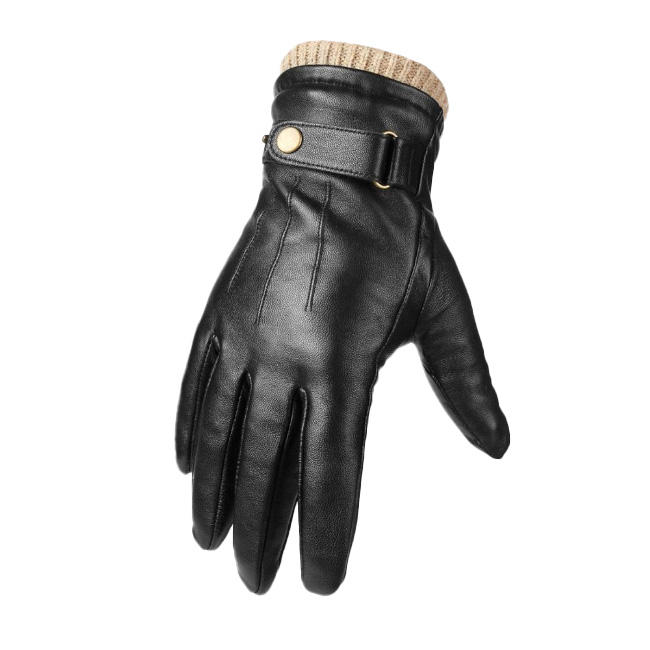 ถุงมือหนังแพะสีดำตามสั่งสำหรับเล่นกีฬาฤดูหนาวกันความหนาวจากปากีสถาน