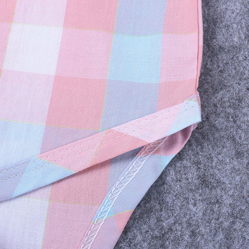 ชุดรอมเปอร์เด็กผู้ชายลายตารางสีชมพูและกางเกงสีขาวราคาส่งถูก พร้อมโบว์ผูกสุดน่ารัก