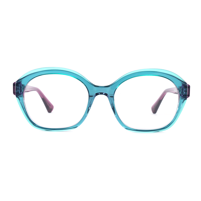 แว่นตาแฟชั่นสีเขียวกรอบแว่นตาอะซิเตทสำหรับผู้หญิงอ่อนโยนเชื่อมต่อแว่นตารูปทรงมอนสเตอร์