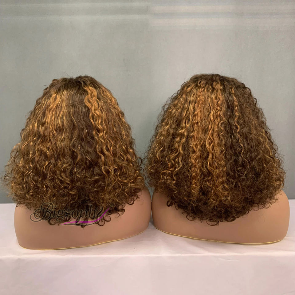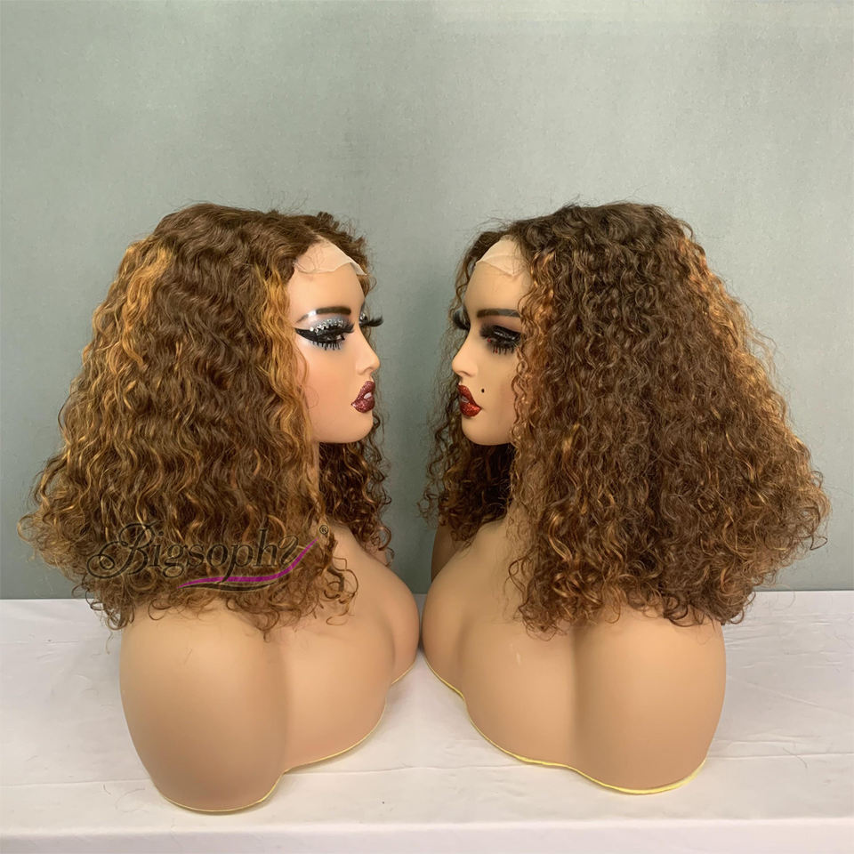วิกผมบ๊อบผมแท้ราคาส่งถูก แบบลูกไม้ด้านหน้า 14 นิ้ว พร้อมเชือกผูกผมลูกไม้ 4x4 ลอนหรูหรา ไฮไลท์สี P4/30 วิกผมเวอร์จิ้นจากผู้ขาย