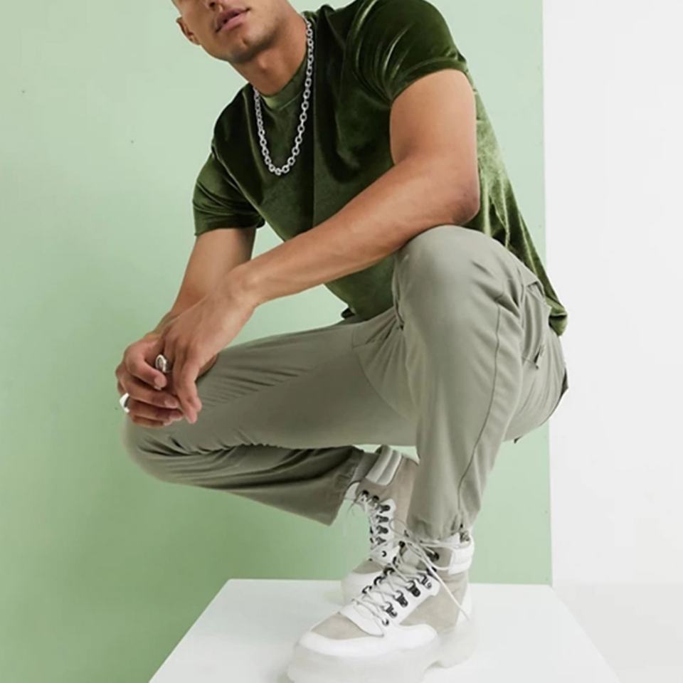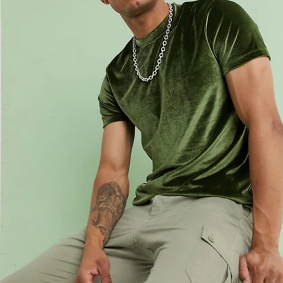 เสื้อยืดกำมะหยี่สีเขียวเรียบราคาส่งถูกสำหรับผู้ชาย