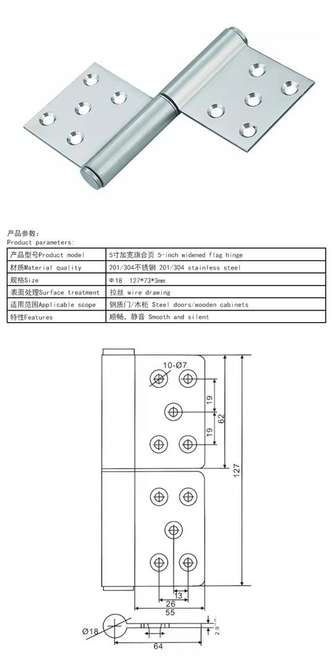 Stainless Steel, 5 Inch Widened Flag hingeType