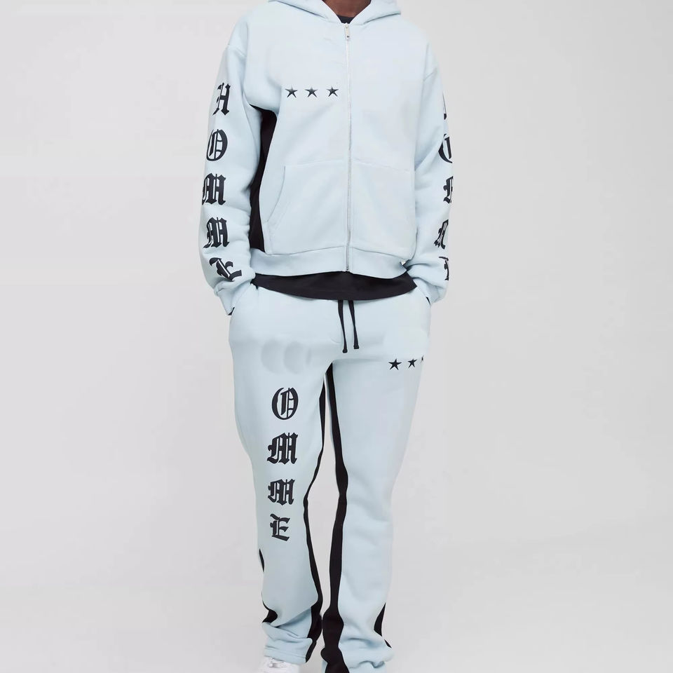 ชุดวอร์มกันลมมีฮู้ดสำหรับผู้ชายไซส์ใหญ่ ราคาส่งถูก ผลิตจากผ้าฝ้าย 100% เป็นมิตรกับสิ่งแวดล้อม แห้งเร็ว กางเกงทรงบาน