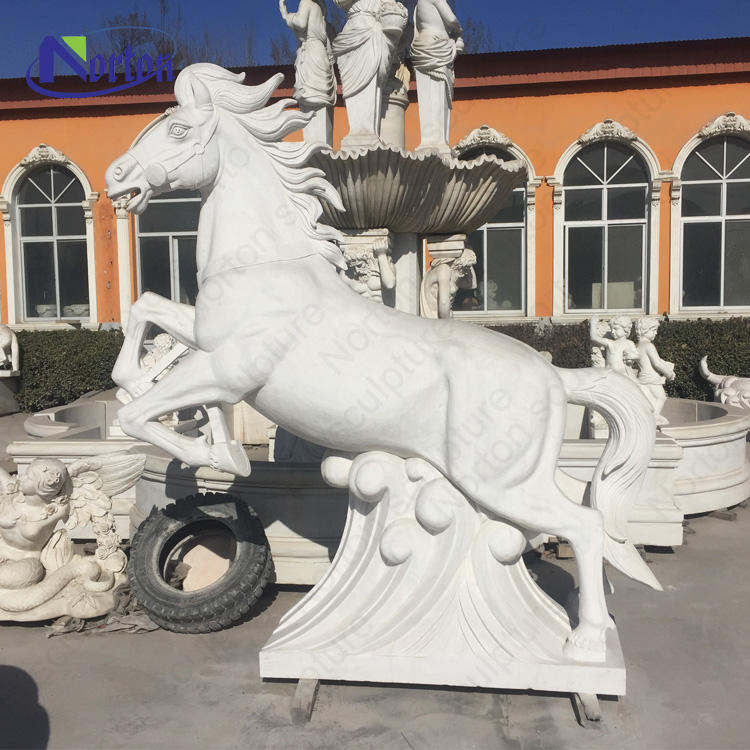 รูปปั้นม้าหินอ่อนแกะสลักหินสีขาวสำหรับตกแต่งสวนในบ้านตามสั่ง