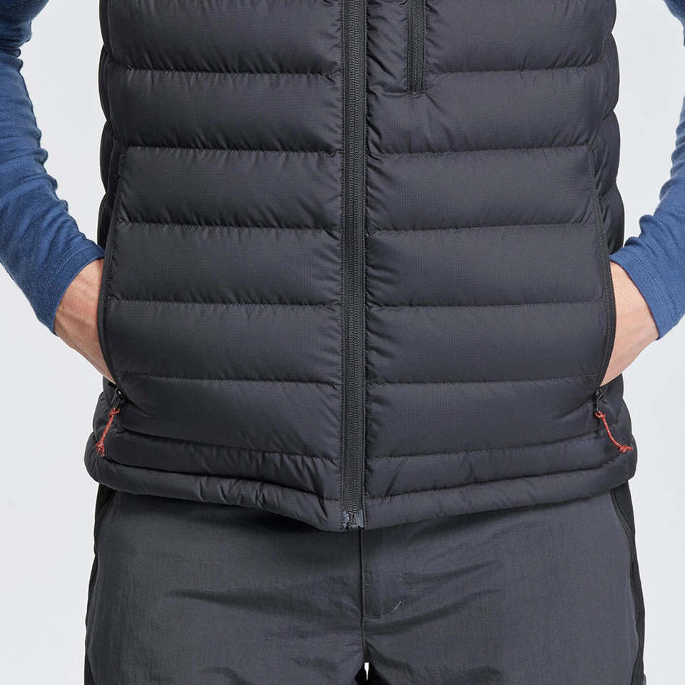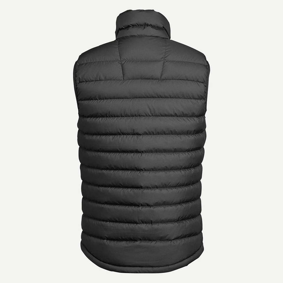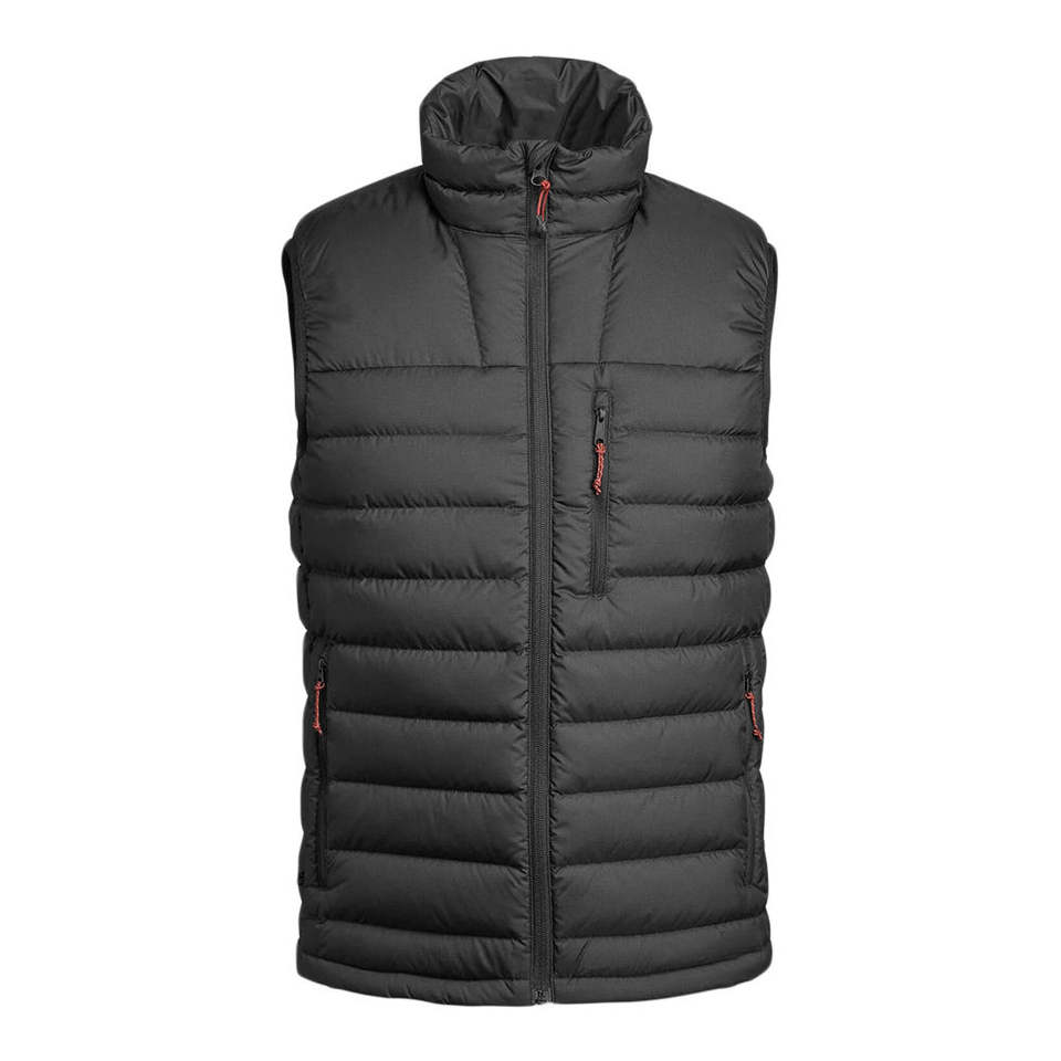 เสื้อกั๊กพัฟเฟอร์ผู้ชายสีดำราคาส่งถูก แบบควิลท์ ดีไซน์สั่งทำได้ คอตั้ง แขนกุด