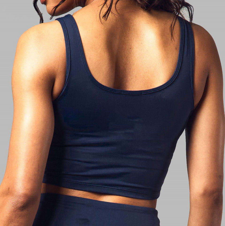 สปอร์ตบราสวมใส่สบายสีกรมท่าเสื้อมีแผ่นรูปตัวยูเสื้อยืดโยคะไร้สายพิมพ์โลโก้สำหรับเด็กผู้หญิง
