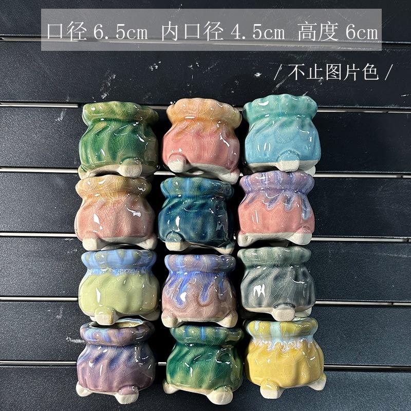ขายส่งราคาถูกที่เรียบง่ายน้ําแข็งแตกไหลเคลือบสร้างสรรค์กระถางดอกไม้ขนาดเล็กน่ารักกระถางฉ่ําเกาหลี