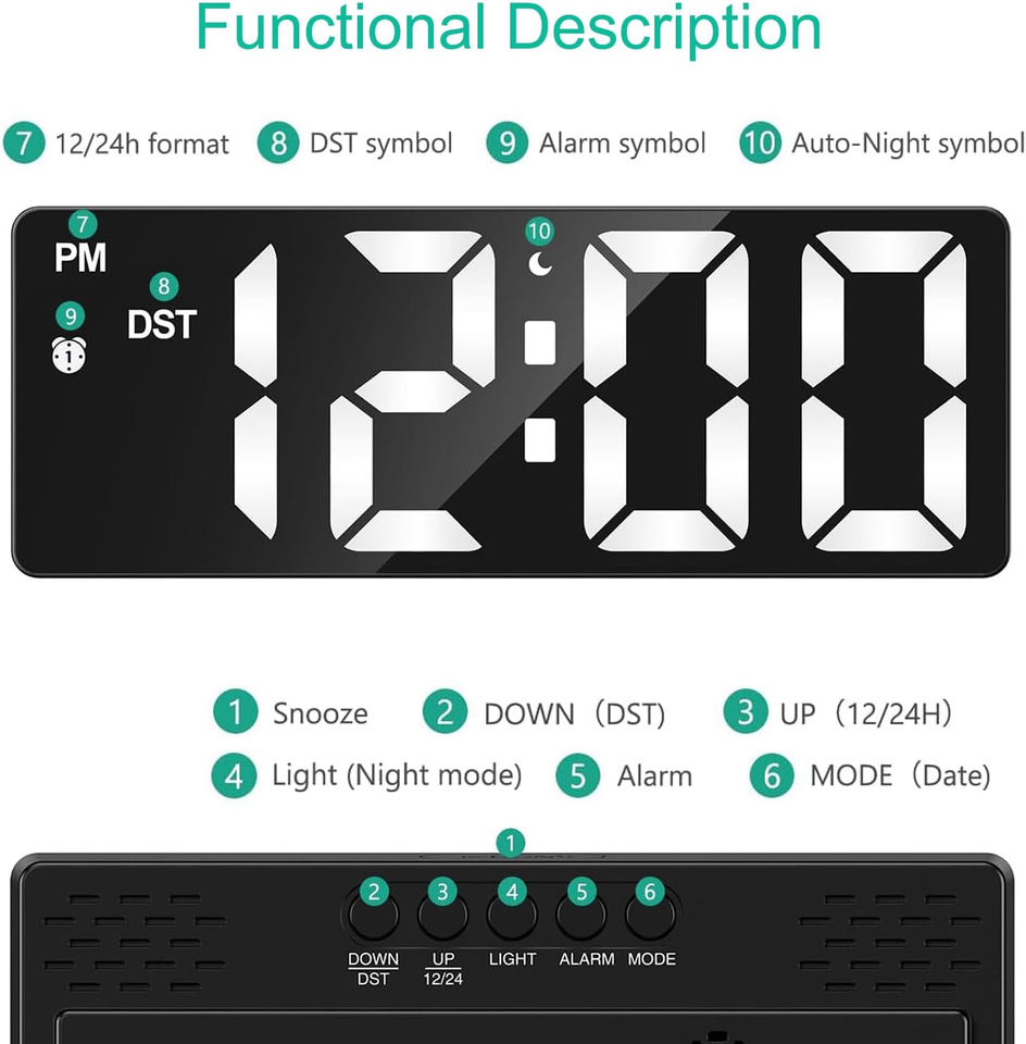 นาฬิกาปลุกดิจิตอลอัจฉริยะจอแสดงผลขนาดใหญ่ LED พื้นผิวนาฬิกากระจก LED สำหรับแต่งหน้าบ้านนาฬิกาตั้งโต๊ะกระจก