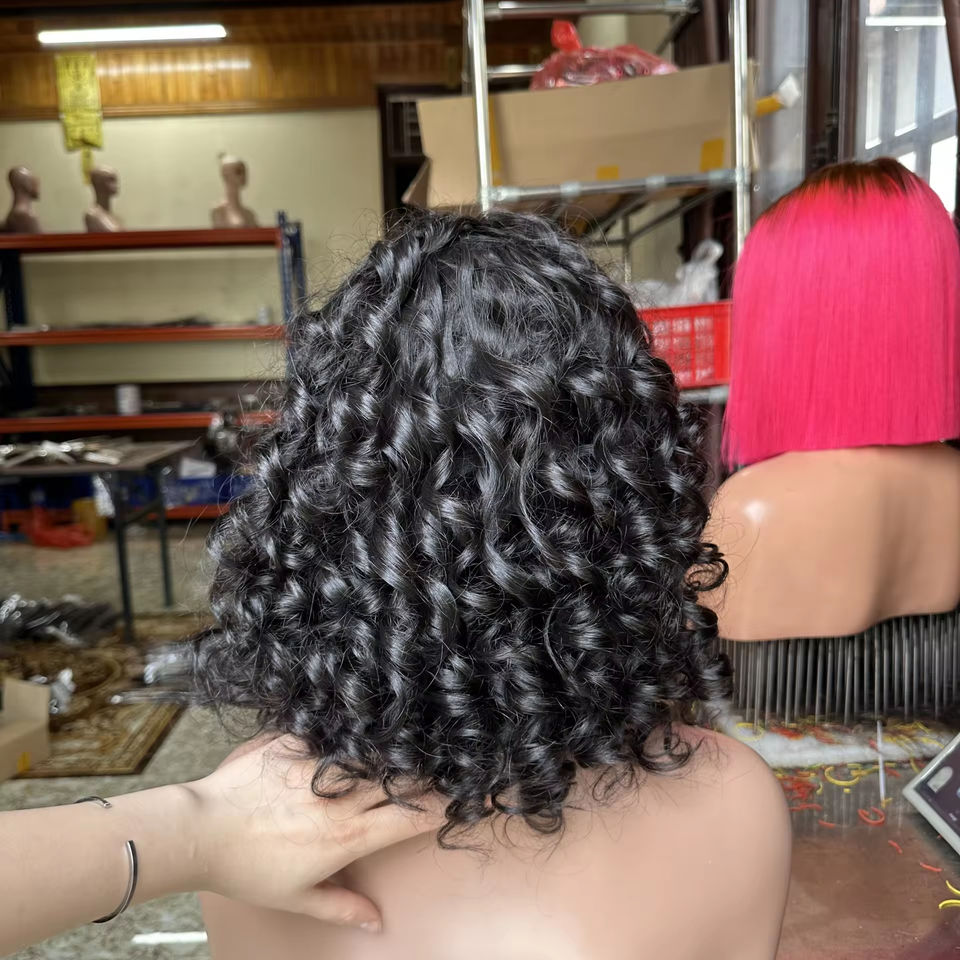 วิกผมมนุษย์ผมหยิกเป็นช่อผมบ๊อบสั้นธรรมชาติแบบไม่ใช้กาววิกผมคนจากเวียดนาม