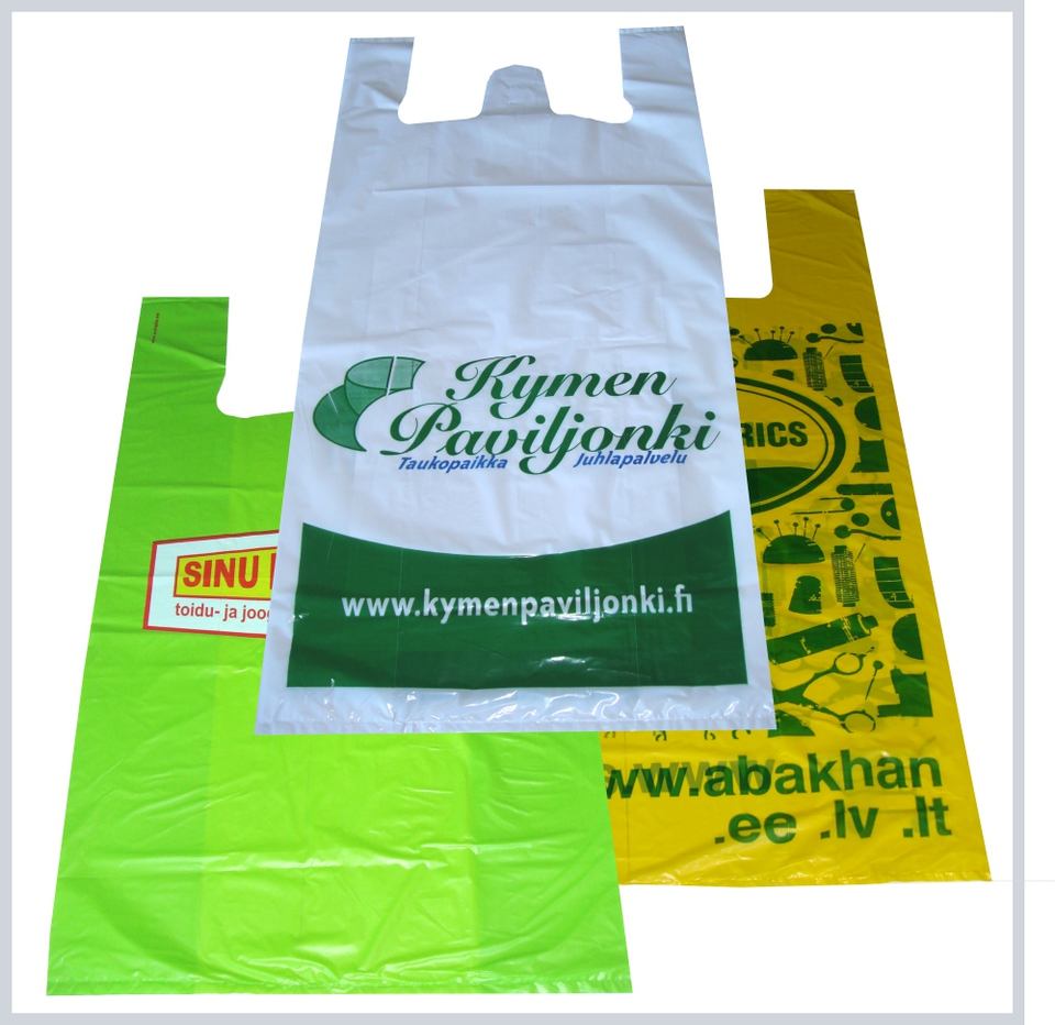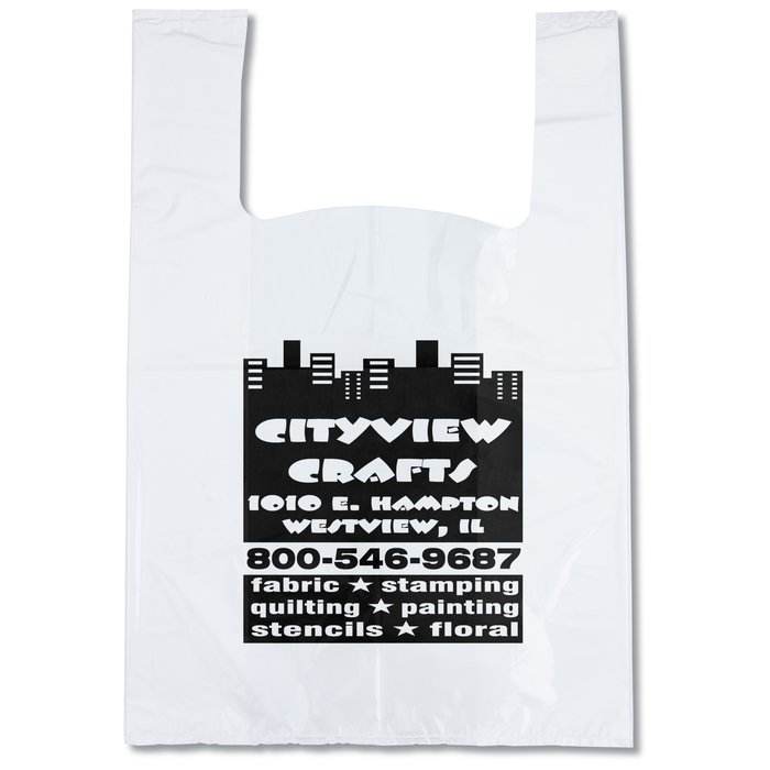 ถุงพลาสติกรีไซเคิลสำหรับช้อปปิ้งถุงใส่เสื้อยืดแบบสั่งทำสำหรับร้านขายของชำ
