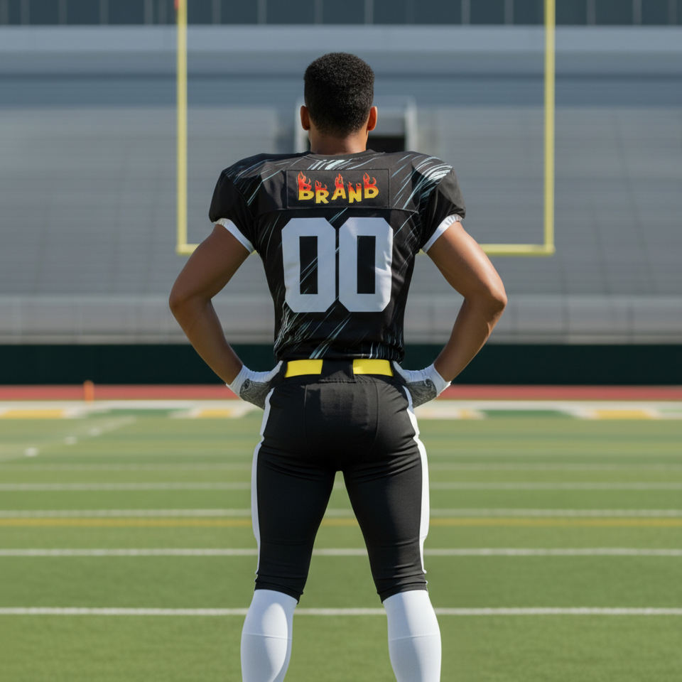 ชุดยูนิฟอร์มอเมริกันฟุตบอลแบบซับลิเมชั่นสั่งทำราคาส่งถูก คุณภาพสูง ปักชื่อได้ ระบายอากาศดี กางเกงขาสั้น สกรีนโลโก้ได้ สำหรับผู้ชาย