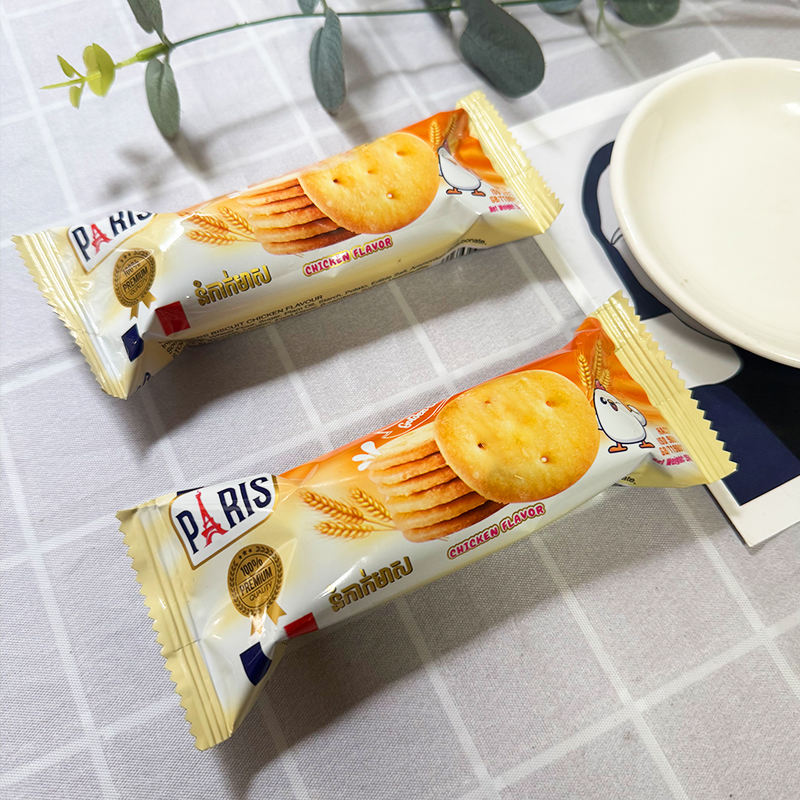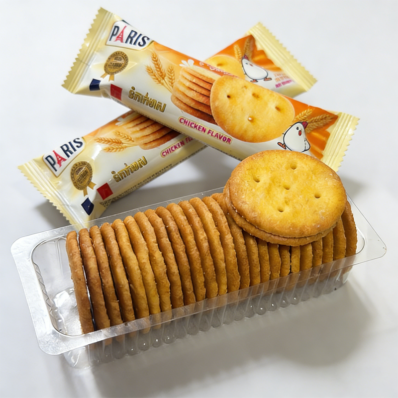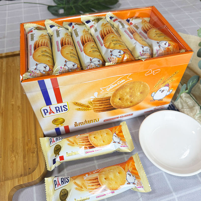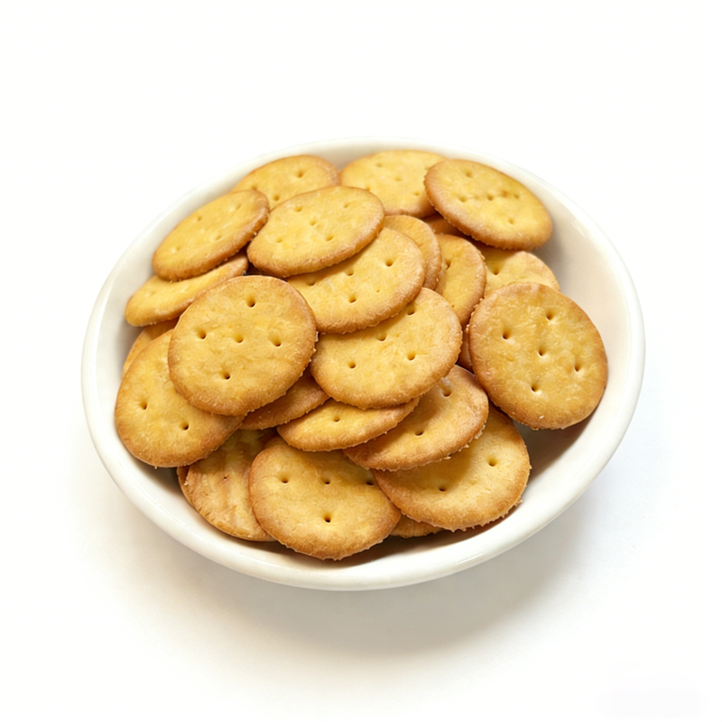 บิสกิตกรอบรสไก่ ขายส่ง ขนมปังกรอบกลมเล็ก รสเกลือทะเล ขนมขบเคี้ยวสำหรับออฟฟิศ บ้าน หรือทานเล่นยามบ่าย
