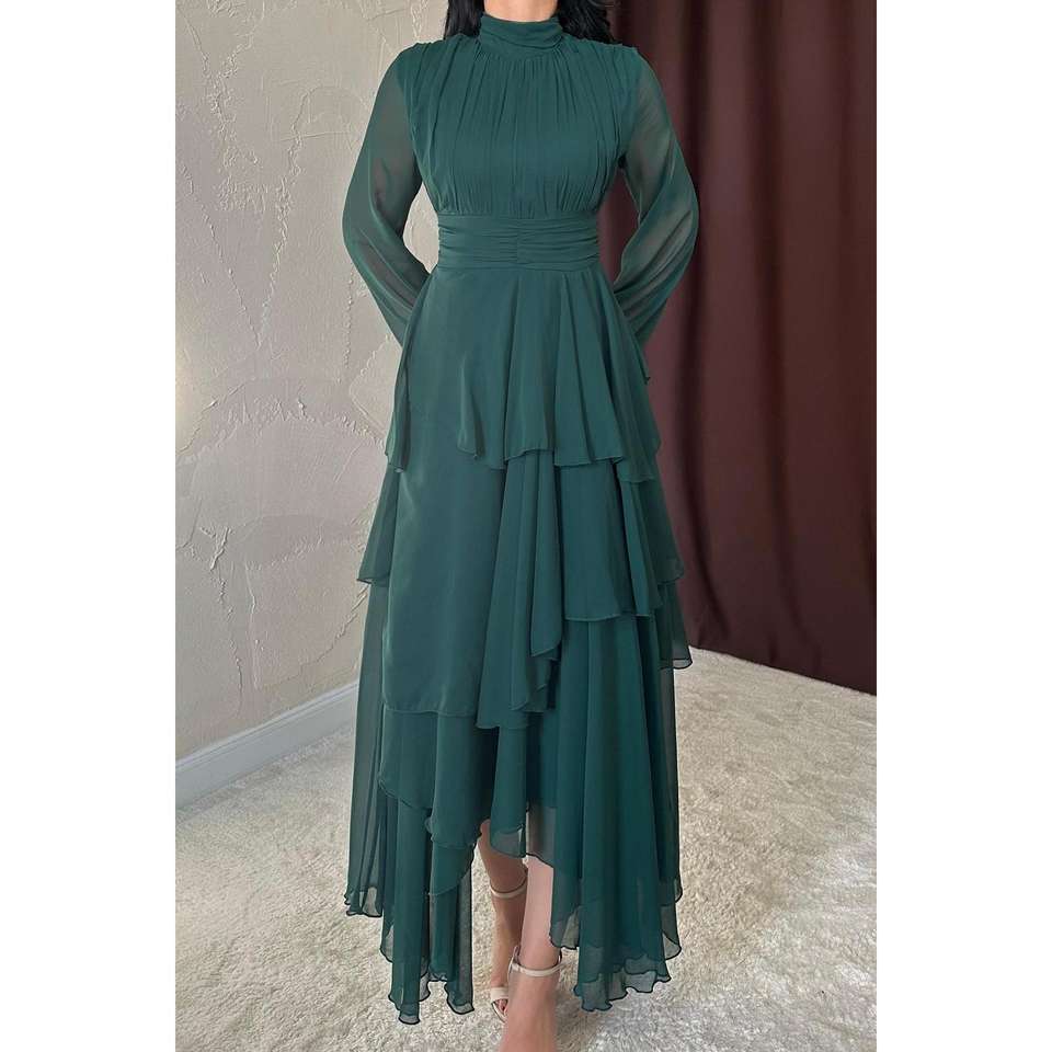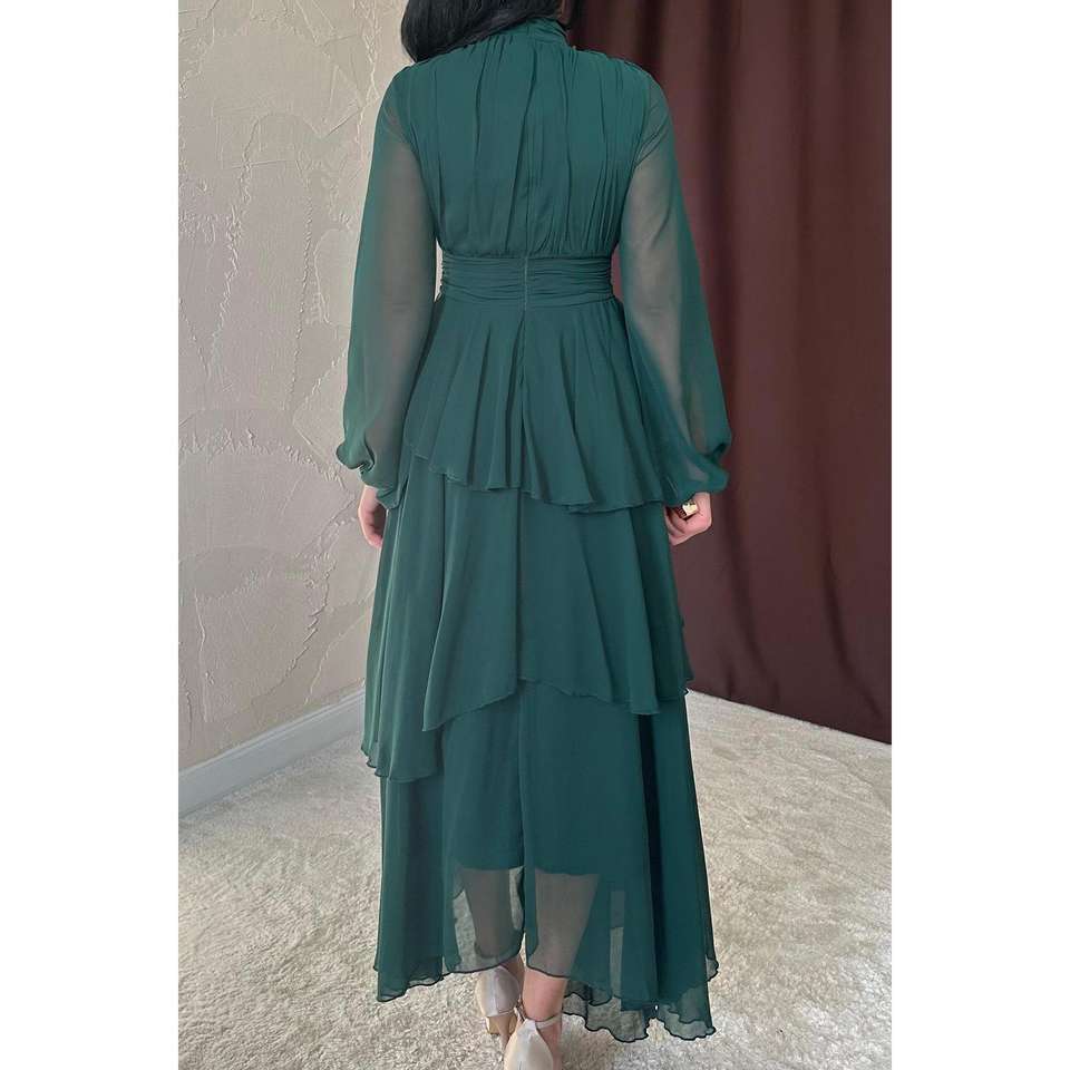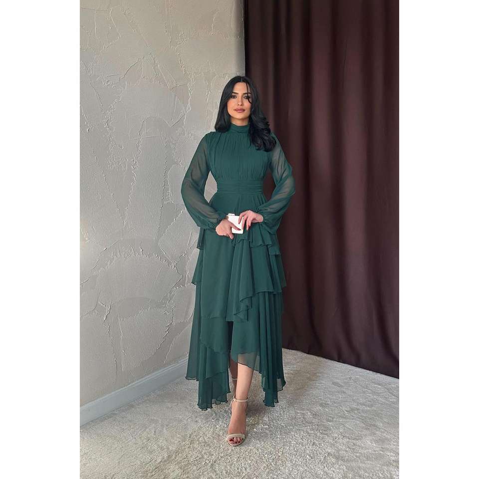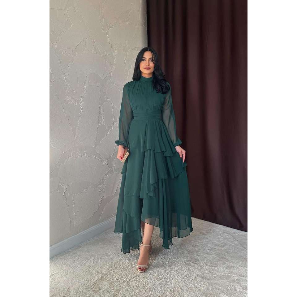 ขายส่งชุดเดรสชีฟองทรงเอพร้อมดีเทลเอวทรงเอ็มไพร์สีมรกต