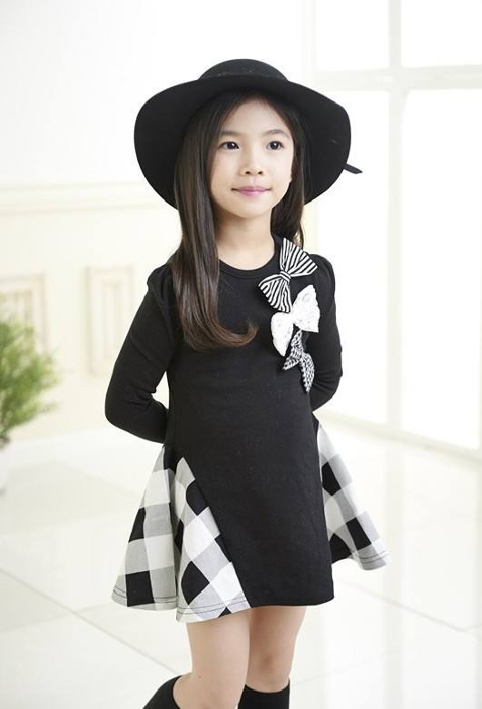 Product Name:Plaid Long Sleeve School Uniform Dress With Bow For Kids Girls