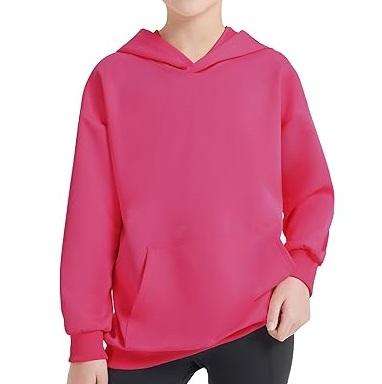 Wholesale Children Pink Colors Blank Girls Kids Pullover Hoodie French Terry Cotton Fleece Pullover Hooded for Kids Breathable