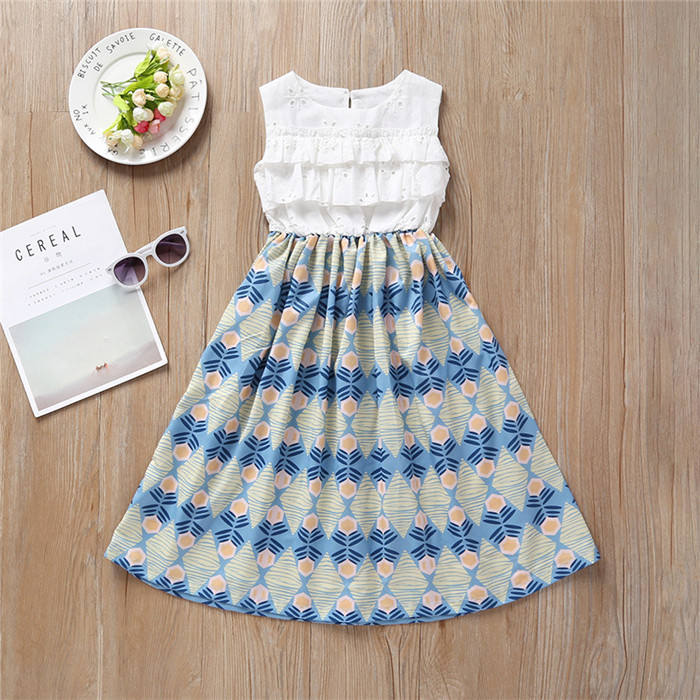 Name:Casual Girls Sleeveless Castle Print Summer Dresses