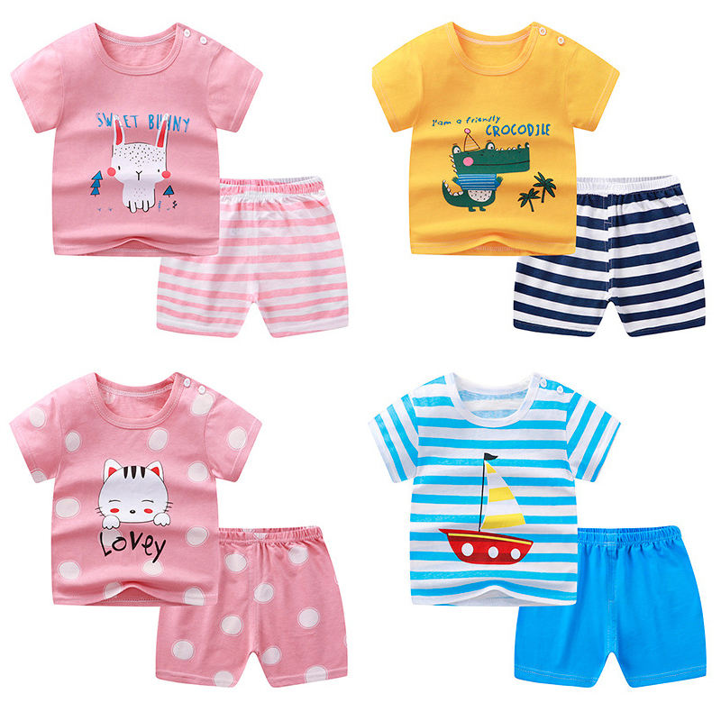 เสื้อผ้าเด็กขายส่ง ชุดเสื้อยืดกางเกงขาสั้นสำหรับฤดูร้อน ชุดเสื้อผ้าเด็ก ชุดเสื้อผ้าเด็กอ่อน