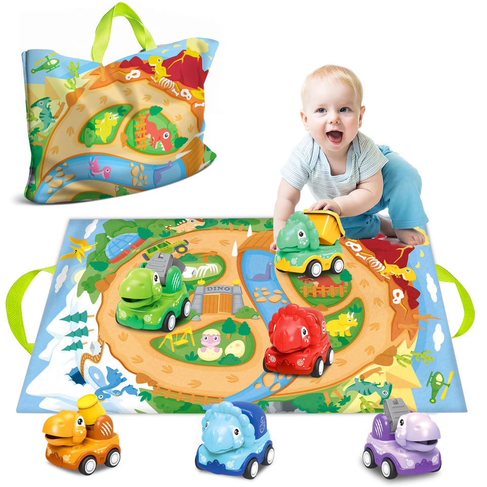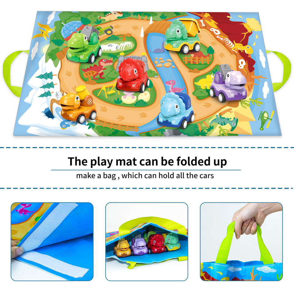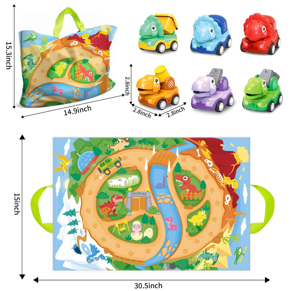 ของเล่นเด็กขายส่ง รถการ์ตูนพลาสติก 2-in-1 รูปสัตว์ ยานพาหนะขนาดเล็ก พร้อมพรม กระเป๋า แผนที่ และตัวต่อ