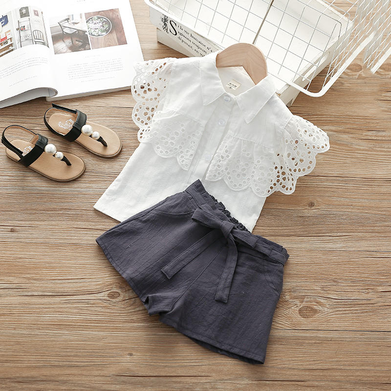 ชุดเสื้อผ้าเด็กขายส่ง เสื้อแขนระบายลูกไม้ ชุดเซ็ทสีขาว