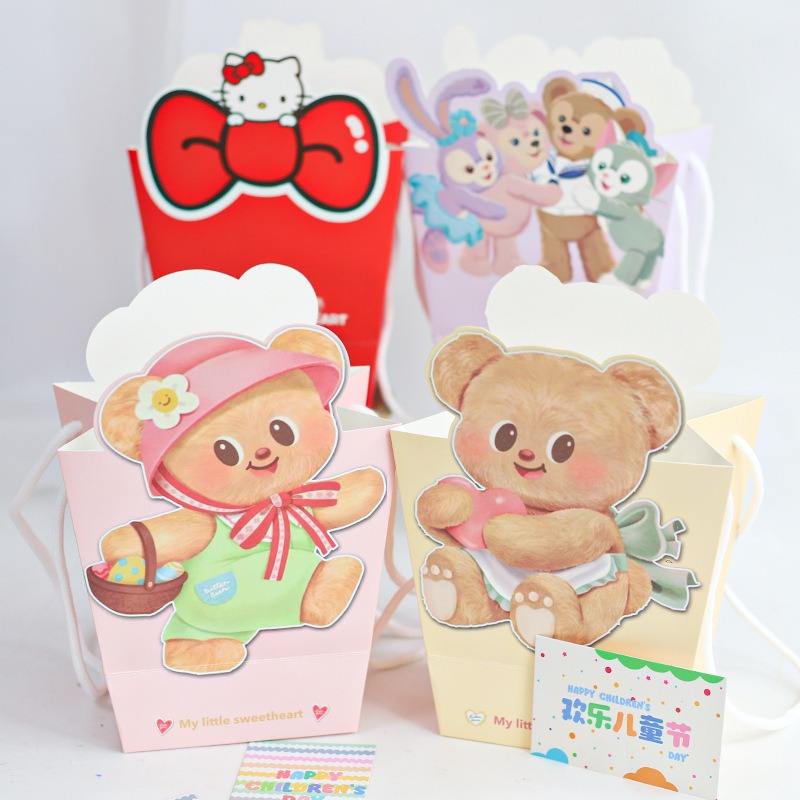 ถุงใส่ขนมลายการ์ตูนสำหรับเด็กทำมือ DIY ของขวัญวันเด็กถุงตกแต่งดอกไม้