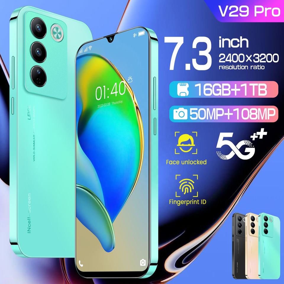 โทรศัพท์มือถือแอนดรอยด์7.3นิ้ว16GB + 1TB V29ของแท้จากจีน