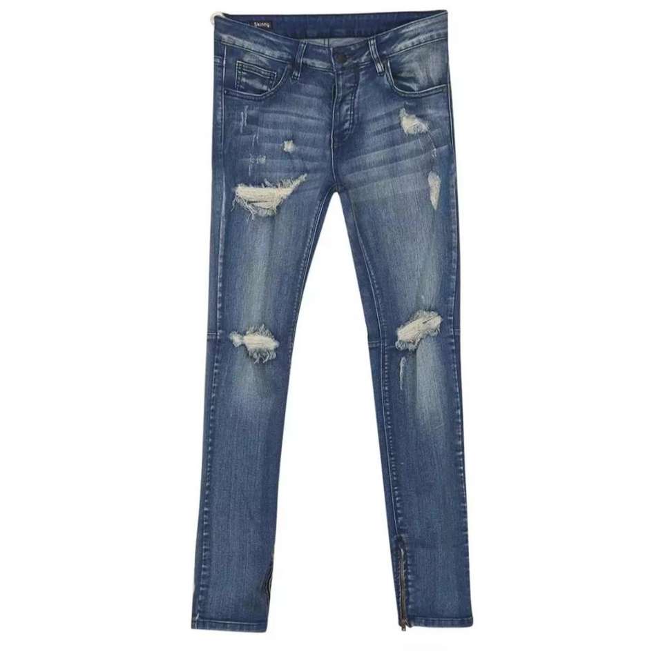 กางเกงยีนส์เดนิมทรงสลิมฟิตสำหรับผู้ชายขายส่งจากจีน ผ้าฝ้าย 100% 240 กรัม ผ้าเจอร์ซีย์แบบซักแล้ว ลายเรียบ ป้องกันขนร่วง แห้งเร็ว
