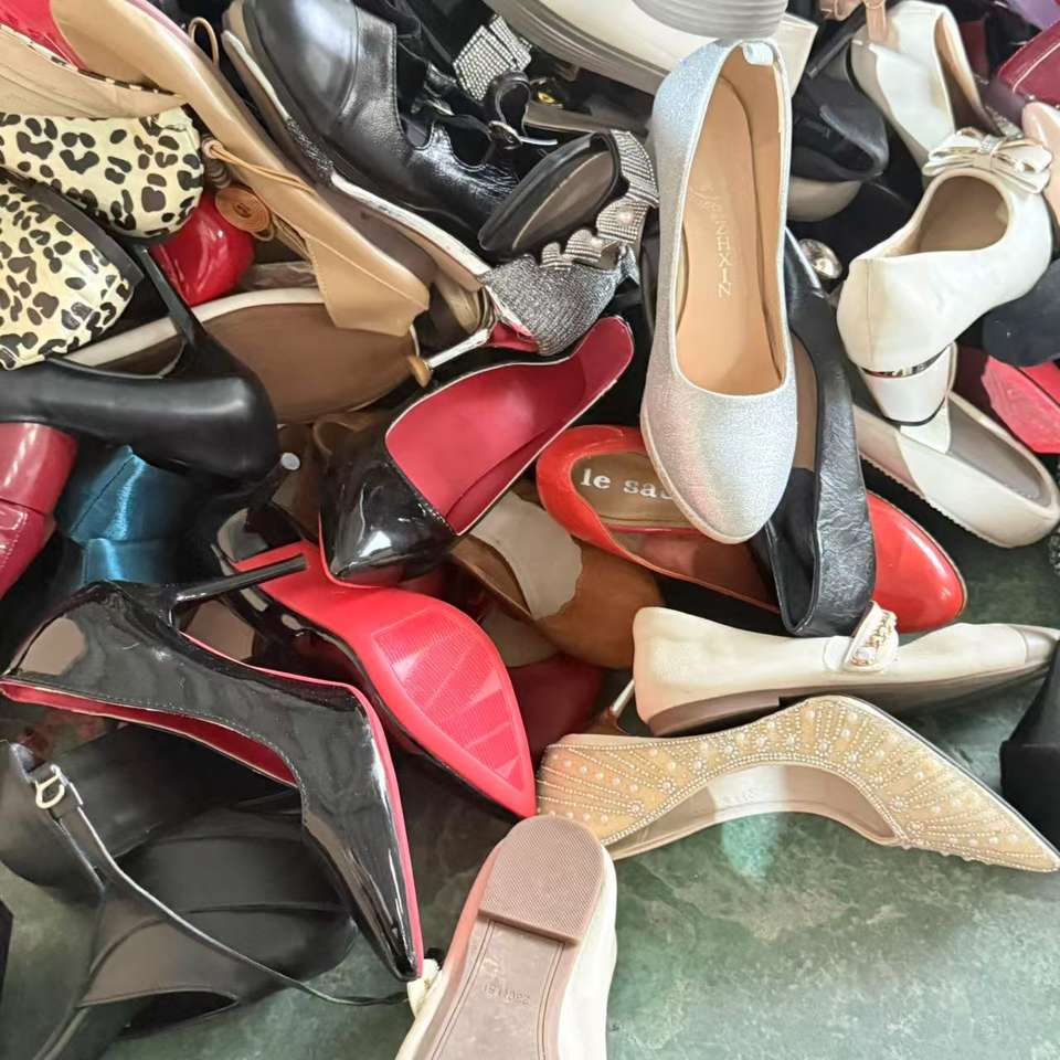 รองเท้าหนังส้นเตี้ยสำหรับสตรีแบบใช้แล้วแบบจีนรองเท้ามือสอง